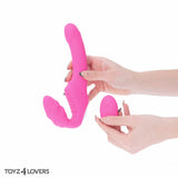 Love Gun di Toyz4Lovers è un vibratore strapless moderno ed accattivante, perfetto per sperimentare nuovi e piccanti giochi di coppia! L’estremità più corta va indossata e permette una presa salda oltre che una intensa stimolazione del punto G grazie anche ai rilievi sulla superficie. In contemporanea, la parte più lunga penetra il canale vaginale o anale della partner e lo massaggia con le vivaci vibrazioni sprigionate lungo il fusto. In aggiunta hai un delizioso telecomando wireless per azionare il toy a distanza o lasciare che sia il/la partner a farlo!